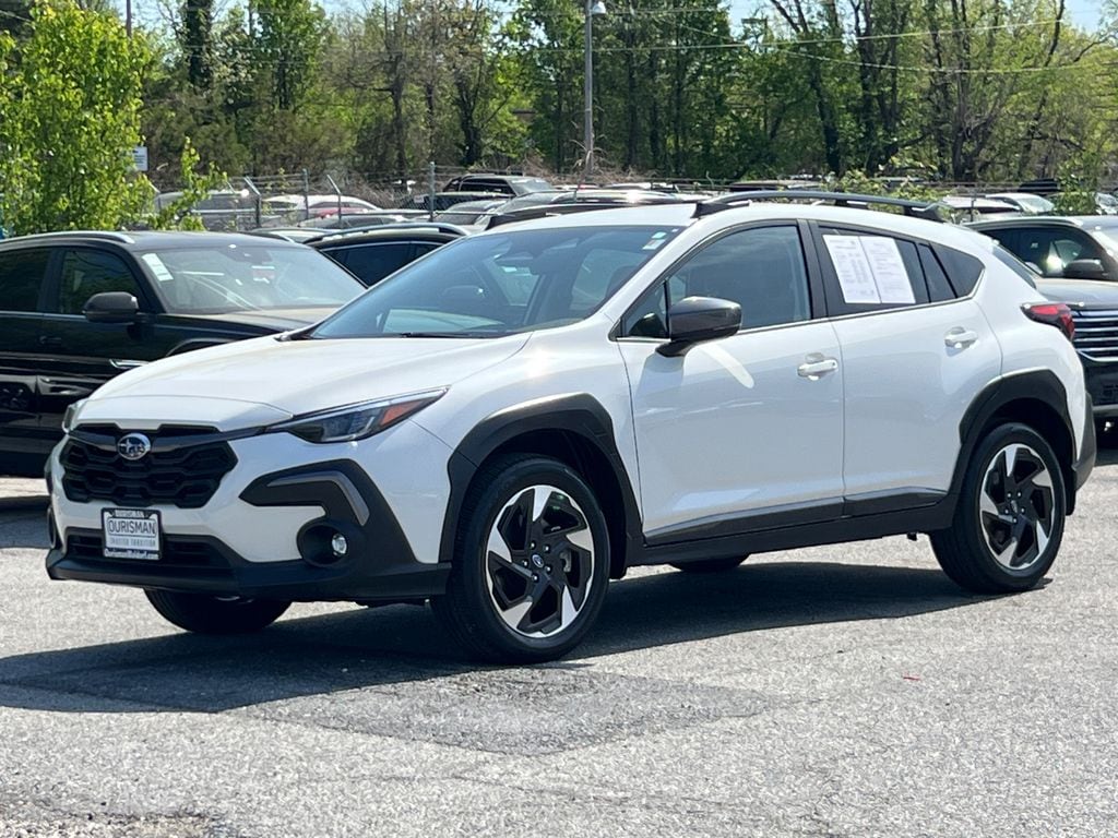 2025 Subaru Crosstrek Limited Crystal White Pearl Maryland State Inspected with over 120 point inspection performed by a trained technician., Auto-Dimming Exterior Mirror w/Approach Light, Auto-Dimming Mirror w/Compass & HomeLink, Brake assist, Crosstrek Mirror Package, ELECTRONIC STABILITY CONTROL, Exterior Parking Camera Rear, Four wheel independent suspension, Heated door mirrors, HEATED FRONT BUCKET SEATS, Leather-Trimmed Upholstery, MEMORY POWER DRIVER SEAT, Power door mirrors, Power steering, Power windows, REMOTE KEYLESS ENTRY, Speed-sensing steering, Standard Model, Steering wheel mounted audio controls, TRACTION CONTROL, Turn signal indicator mirrors, Wheels: 18" x 7.0" J Machine Finish Aluminum-Alloy. CARFAX One-Owner.