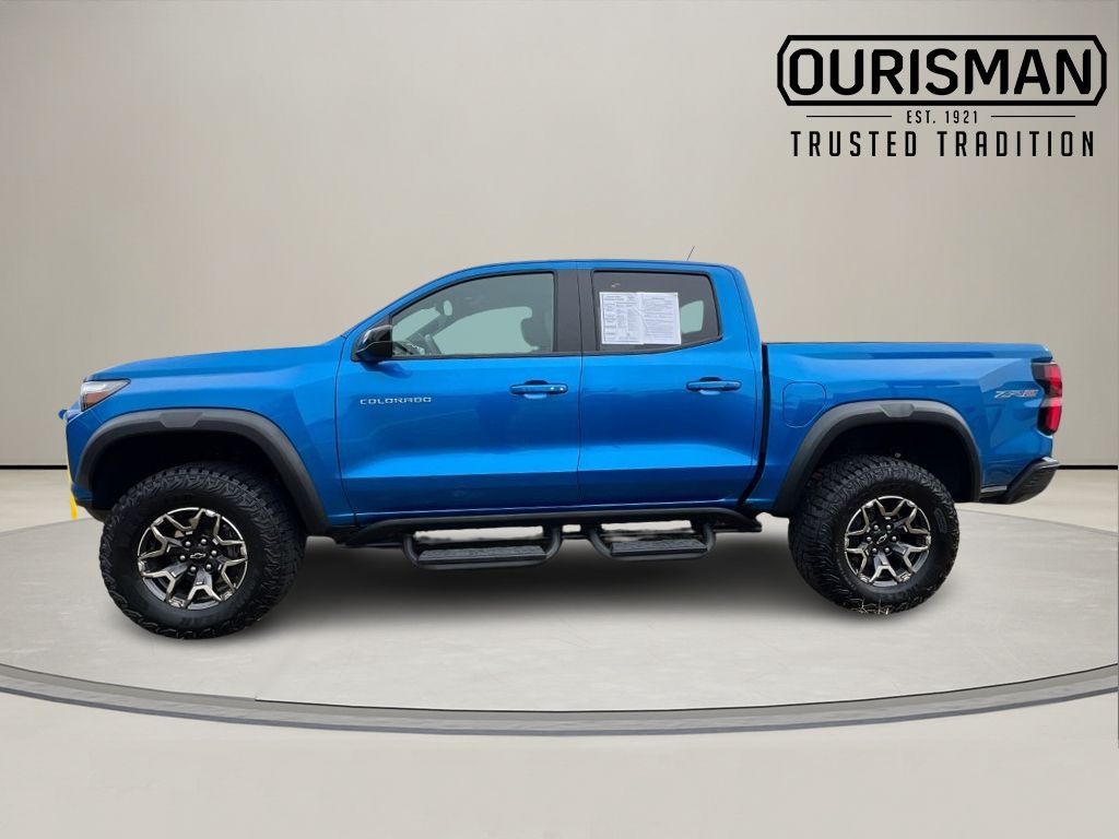 2024 Chevrolet Colorado ZR2 Glacier Blue Metallic Maryland State Inspected with over 120 point inspection performed by a trained technician., 4WD, 6-Speaker Audio System Feature, Apple CarPlay/Android Auto, Automatic Emergency Braking, Blind Zone Steering Assist w/Trailering, Chevy Safety Assist, Cloth/Evotex Seat Trim, Driver & Front Passenger Ventilated Seats, Driver Memory Settings, Driver Seatback Map Pocket, Electronic Automatic Cruise Control, Following Distance Indicator, Forward Collision Alert, Front License Plate Kit, Front Pedestrian & Bicyclist Braking, Heated door mirrors, Heated Driver & Front Passenger Seats, HEATED FRONT BUCKET SEATS, Heated Steering Wheel, IntelliBeam Automatic High Beam On/Off, Lane Keep Assist w/Lane Departure Warning, Navigation System, Outside temperature display, Perforated Leather-Appointed Seat Trim, Power door mirrors, Preferred Equipment Group 4ZR, Radio: 11.3" Diagonal Advanced Color LCD Display, Rear Center Armrest, Rear Cross Traffic Braking, Rear Park Assist, Rear step bumper, Rear-Window Electric Defogger, Safety Package, Security system, SiriusXM Radio, Steering Wheel Mounted Audio Controls, Wheels: 17" x 8" Graphite & Oxide Gold Aluminum, Wireless Charging, Wireless Phone Projection, ZR2 Convenience Package III, ZR2 Off-Road Package. CARFAX One-Owner.
