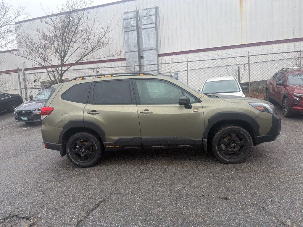 2025 Subaru Forester Wilderness Green Metallic Maryland State Inspected with over 120 point inspection performed by a trained technician., Auto-Dimming Exterior Mirror w/Approach Light, Auto-Dimming Mirror w/Compass & HomeLink, Brake assist, Cargo Sidewall Protector, ELECTRONIC STABILITY CONTROL, Exterior Parking Camera Rear, Four wheel independent suspension, harman/kardon Audio & Power Rear Gate, Heated door mirrors, HEATED FRONT BUCKET SEATS, MEMORY POWER DRIVER SEAT, Outside temperature display, Power door mirrors, Power Rear Gate, Power steering, Power windows, Radio: Subaru 8.0" Multimedia Navigation System, Rear Bumper Cover, Rear Seatback Protector - Wilderness, REMOTE KEYLESS ENTRY, Speed-sensing steering, Steering wheel mounted audio controls, Textured StarTex Upholstery, TRACTION CONTROL, Turn signal indicator mirrors, Wheels: 17" x 7.0 J Matte Black Finish Alum-Alloy, Wilderness Package.