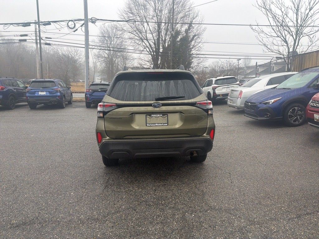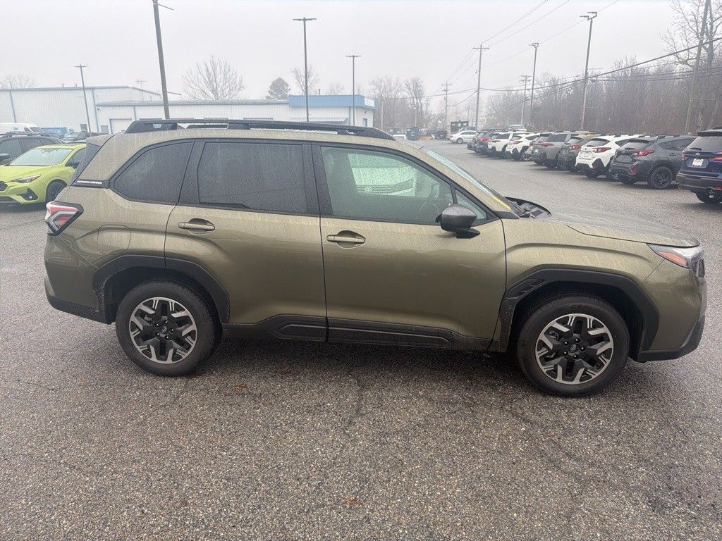 2025 Subaru Forester Premium Green Metallic Maryland State Inspected with over 120 point inspection performed by a trained technician., Auto-Dimming Mirror w/Compass & HomeLink, Automatic Emergency Steering, Blind-Spot Detection (BSD)/RCTA System, Brake assist, ELECTRONIC STABILITY CONTROL, Exterior Parking Camera Rear, Fully automatic headlights, Heated door mirrors, HEATED FRONT BUCKET SEATS, MEMORY POWER DRIVER SEAT, Outside temperature display, Power door mirrors, Power moonroof: Panoramic, Power Rear Gate, Power Rear Gate & Blind Spot Detection w/RCTA, Power steering, Power windows, Premium Textured Cloth Upholstery, REMOTE KEYLESS ENTRY, Steering wheel mounted audio controls, Wheels: 17" x 7.0 J Dark Metallic Aluminum-Alloy.
